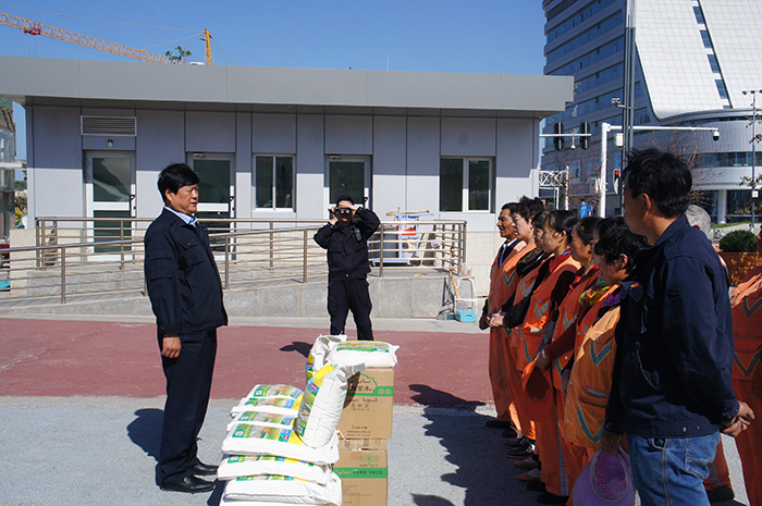 马金文同志代表保洁队慰问喀什路班组环卫工人